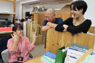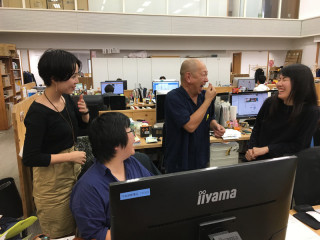 と が、 を囲んでいます。 なにやら企画の相談をしているようです。