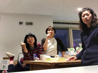 今日は「囲み」の日だなあと 思っていたら、 私もみんなに取り囲まれました。 (向かいの席のコマタさん撮影)