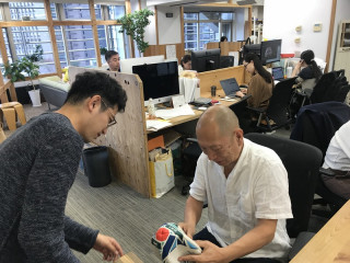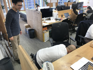 今日はなぜか 社内のあちこちで 「取り囲み打ち合わせ」が くりひろげられています。