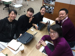 さくっと集まって話しはじめたところ 左側が黒色チーム、 右側が紫色チームにきれいにわかれてる! って気がついたので、 おもむろに写真をとっていたら 「お前もな!」って 思いっきり突っ込まれました。