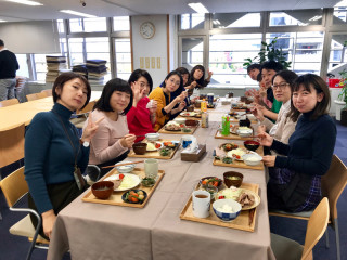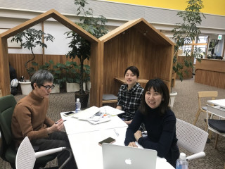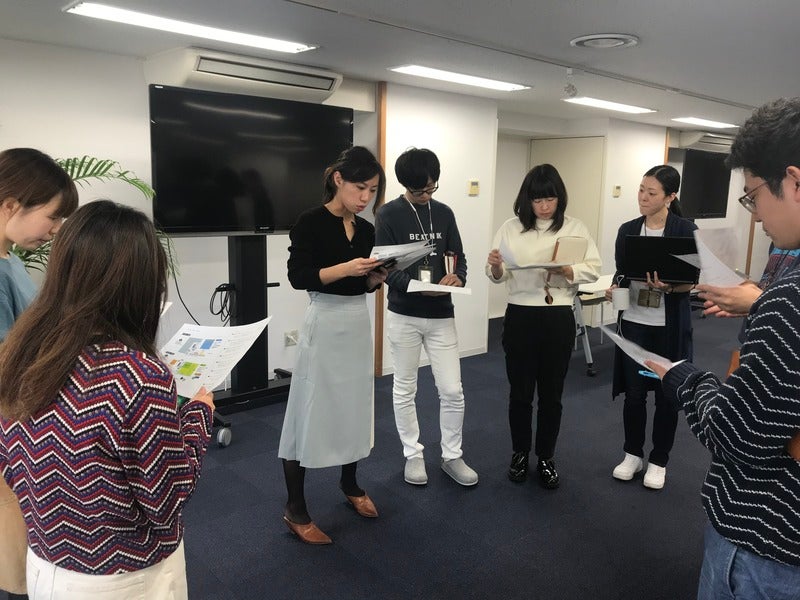 こちら、立ちながら 打ち合わせをしているのは 当日、いろいろな場所で お越しいただく方をご案内するメンバー。
