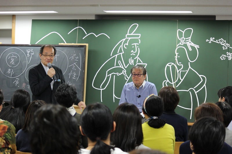 そこから話は、いまに通じる 助詞の「も」と「は」の違いについて (上野さんのたとえ話の絶妙なこと、 見ていただけるのは少し先になりますが、 ぜひオンライン・クラスでご覧ください)、 母系社会について、 庶民が結婚相手をみつけるために 多用された歌の掛け合いである 「歌垣(うたがき)」という文化のこと、 万葉集は実は「女歌」が元気なこと…… といった、万葉集に親しむために 大切な要素を詰め込んだ講義へと つながっていきました。
