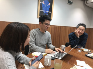 はじめは、 「まあそんなに時間があるわけじゃないから」 とだけおもっていたんです。 個別に相談をするのは、 時間ばっかかかって面倒だし、 さすがに間に合わないだろうということで、 「とりあえず、関係する人全員集合! の術」 を繰り出しました。 それぞれ、テキスト、デザイン、コーディング、 TOBICHIの係です。