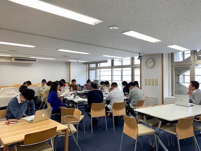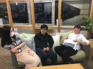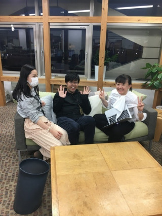 「あそこ、なんか狭いとこで ぎゅっとくっついてる3人、 製作中しておいて」