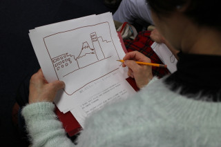 後半は、実践の時間です。 個性を詠ういまの短歌と、 共有するたしなみを詠む和歌。 そのちがいを学んだ上で、 日本の象徴である富士山を詠んだ 古典的な歌をふまえて、 受講生のみなさんが、富士山の絵を描き、 富士に重ねたloveを詠っていきました。