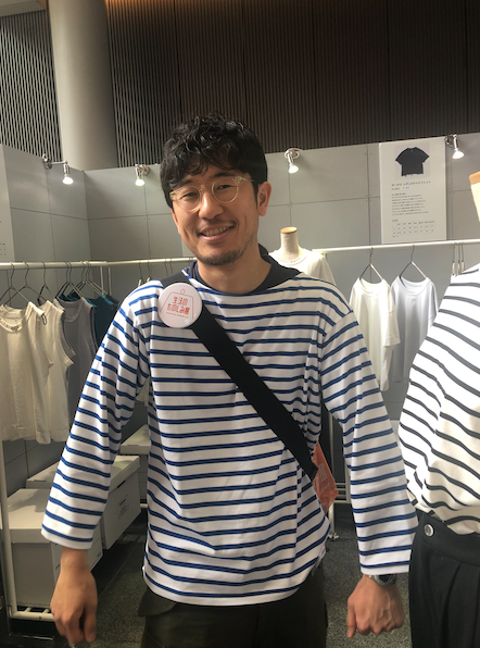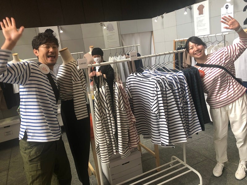 ふたりが着ている〈O2〉のボーダー、