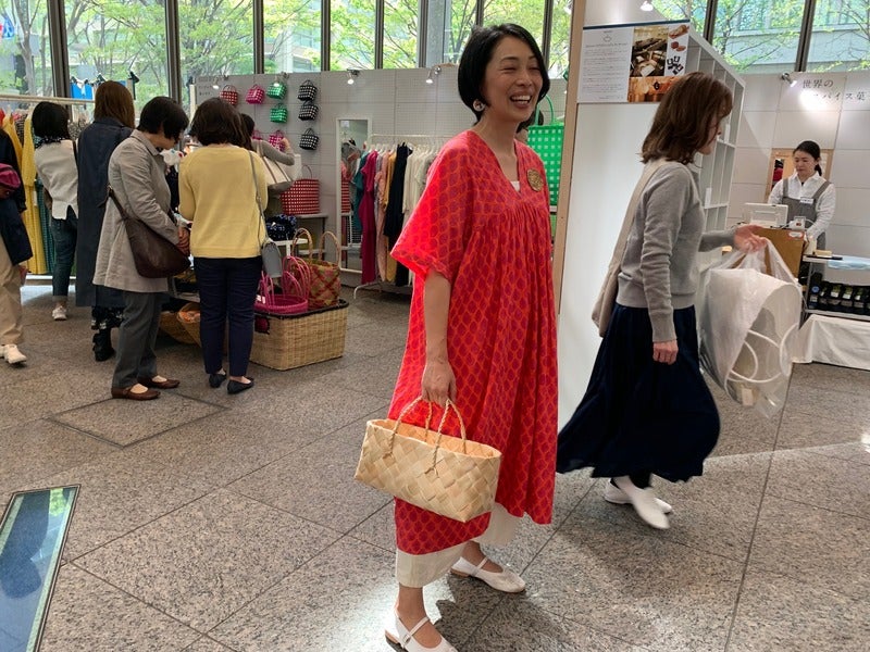 月桃のカゴを持ってもらいましたよ〜!