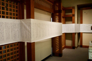 電子書籍では、巻物のように、 横にスクロールするデザインにしたのですが これをお読みになった 新潮社記念文学館の担当者さんが 「角館には、パソコンに詳しくないけど 塩野先生のファンがたくさんいる。 だから、 じっさいの巻物にして展示したい!」 という、なんともおもしろいことを思いつき、 第4章を「巻物形式」で展示してます。