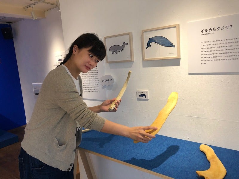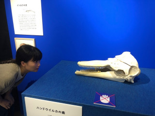 ジュゴンとクジラの肋骨の持ち比べができます。