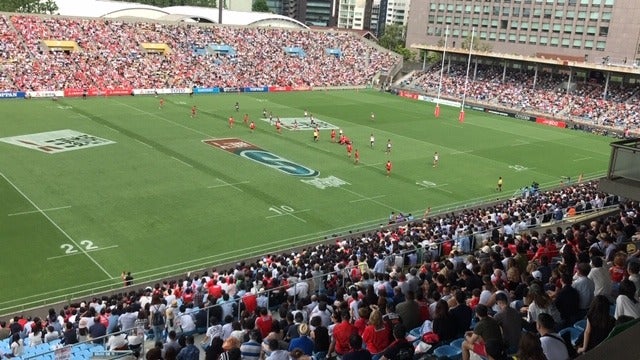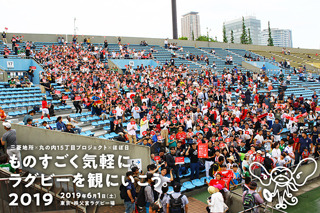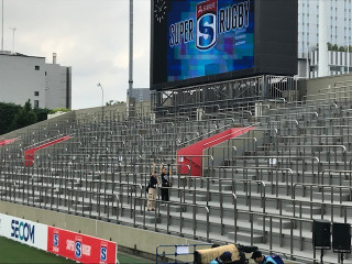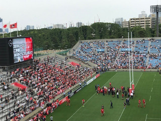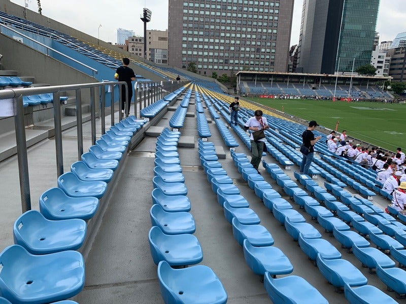 今日のイベント 「ものすごく気軽にラグビーを観にいこう。」 に向けて秩父宮ラグビー場へ 現場入りをしました。 ほぼ日のオフィスの目の前なので ぼくらにとっても気軽な場所です。 天気は曇り、最高気温は27℃の予報。 晴れすぎても暑いし、雨だと困る。 なんてちょうどいいんでしょう。
