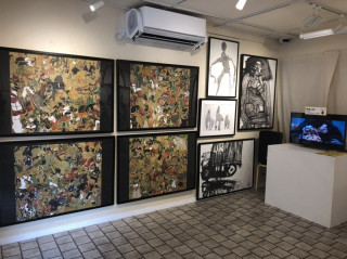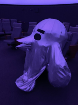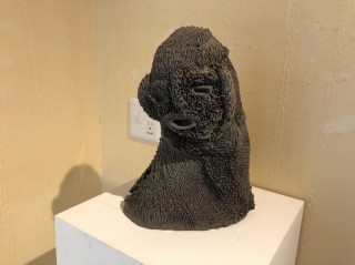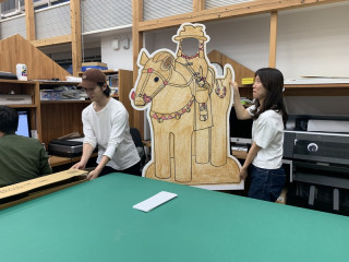 スソさんが「TOBICHI」で 「古墳と山高帽展」をしたときに 登場した馬です。 当時現場では、 多くの人がこの馬から 顔をだしました。