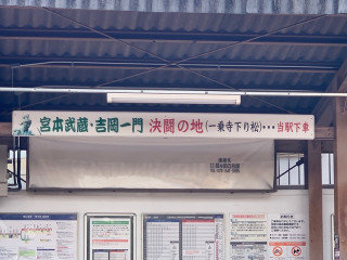 ところで、この一乗寺って! 宮本武蔵の! あの吉岡一門との! 帰りに駅で看板を発見して 現場まで行こうかと思ったけど、 あまりに暑いので断念。