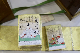 試合前には、国文研教授の神作研一さんが 江戸前期、かなり身分の高い人の注文で 作られたと推測される手描きの 美しい百人一首かるたを 披露してくださいました。