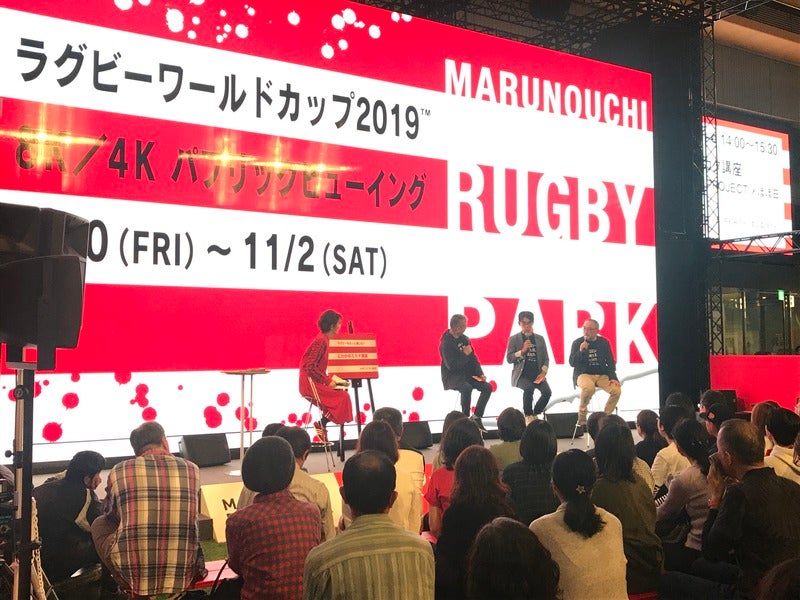 渡辺真理さんの司会のもと、 にわかラグビーファンのイトイさん、 日本ラグビー協会の コーチングディレクターであり、 にわかラグビーファンの道しるべを つくってくださった中竹竜二さん。 そして、丸の内15丁目プロジェクトの 映像ディレクター中村裕さんが これからはじまる ラグビーワールドカップの 決勝トーナメントにむけての 楽しみかたを話しています。 この様子は急いで編集して、 ほぼ日でも掲載予定です。