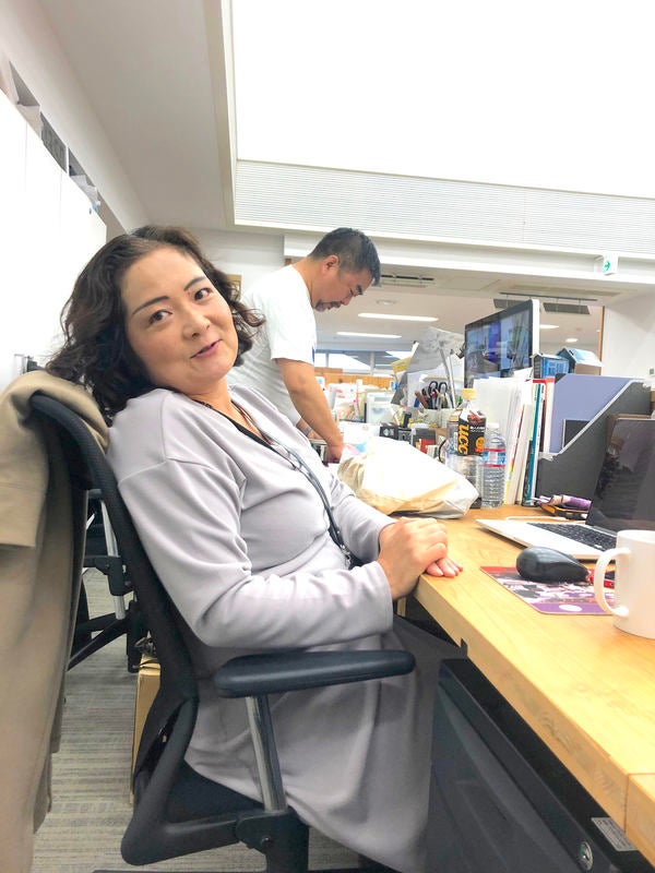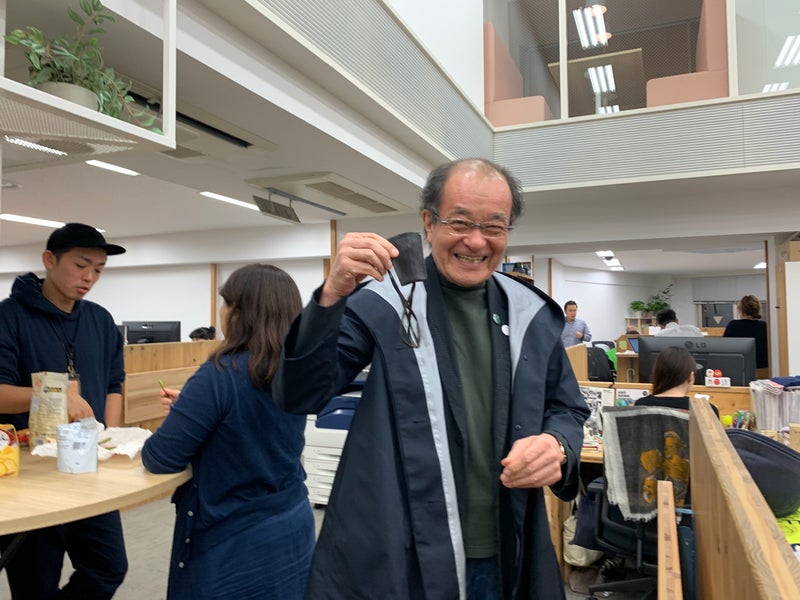 がかろやかに目の前を横切り、 オフィスコンビニでラーメンを購入し お湯をそそいでいるではないですか。