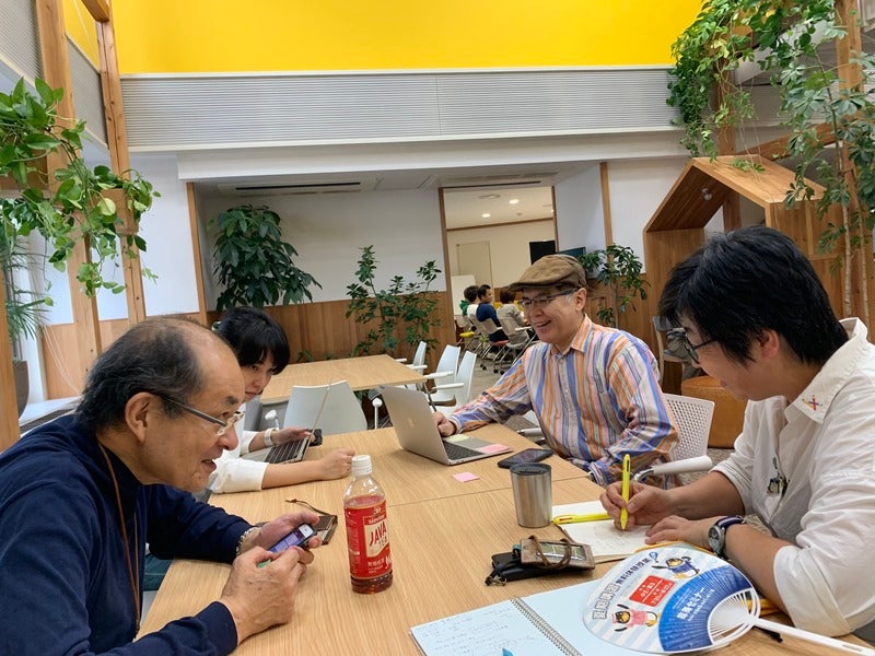 学校チームのメンバーは 最近それに気がついたらしく、 今日はカメラをむけたら、 「やだ、真面目にしなくちゃ」 といいながら、 真面目にしていました。 いや、そのままでもふつうに 真面目に話し合いをしてましたって。 |