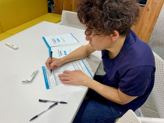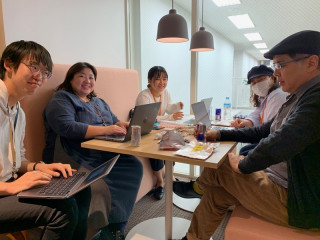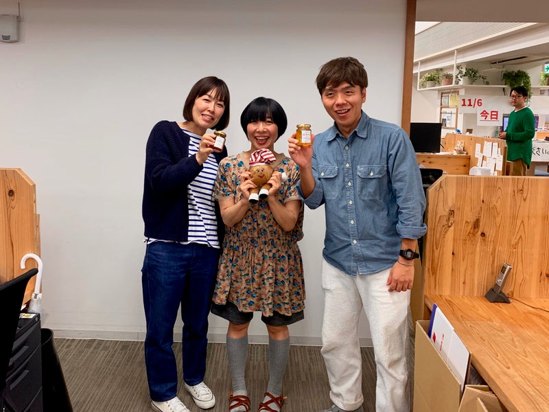 現在TOBICHI2で開催中の梅津恭子さんの 「Plum'sの里帰り」展に、 田中泰延さんがご来場されたときの 写真なのですが、 同じ時間帯にいた