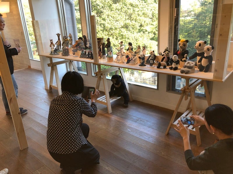 そして、マイペースに モモコちゃんを、いろんなところに 動かして写真を撮る梅津さん。 どこに置いても、かわいいです。 味わい深いシルエット。 男心もくすぐる梅津さんの作品。 こんなに並ぶことは、 今後もないのではないでしょうか。