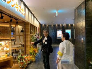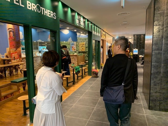 糸井重里、レストランフロアを見学中です。かなり、真剣です。どういうときに来るか?何が食べたいときにどの店がどう機能するのか?かなり真剣に見学中です。どうかと思うほど大真面目です。
