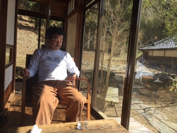 廣瀬さんと、縁側のロッキングチェアに