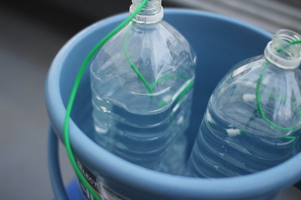 何本かのペットボトルに水を入れて