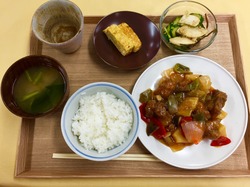 今日の給食は「酢豚」でした。