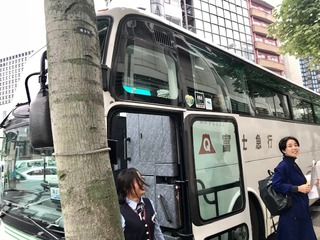 バスに乗り込んで河口湖に向かいます。