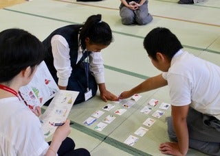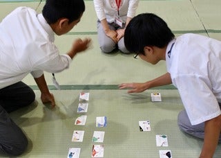 中学生たちが競技かるたに挑戦しました。