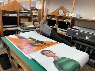 田島光二さんの絵をプリントアウトしています。