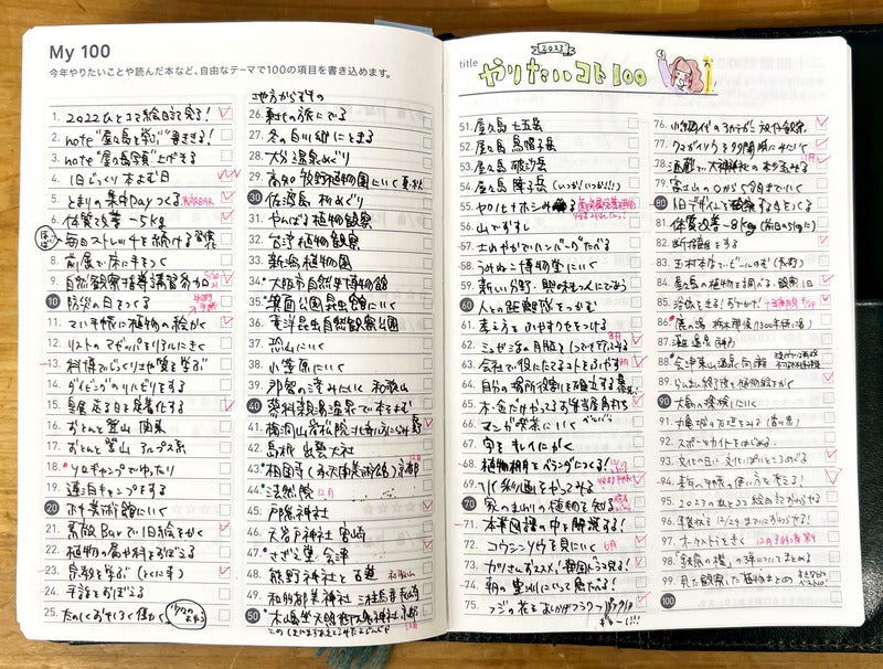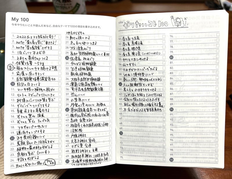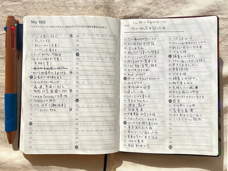 1〜50までは「今年やりたいこと」「51〜100までは「今年読んだ本」を書くという独自ルールを設定。
