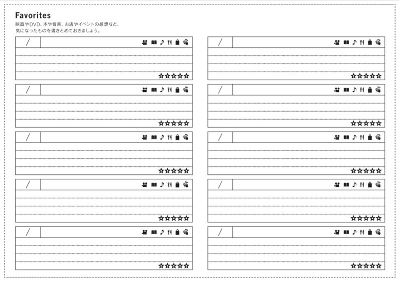 You might recognize this page from the back of your techo book - it's included in all techo types! Keep a record and thoughts of movies you've saw, books you've read, music you've listened to, events you attended all in this list. You can also use it to write down your favorite phrases from a book or movie.