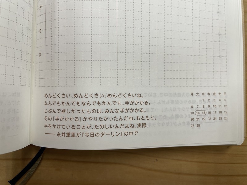 I used to like reading books of quotes, so my first impression of the techo was, gI can read the Hobonichi Techo like a book of quotes with functions as a planner. What a good deal!h And that is one reason why I started using it.