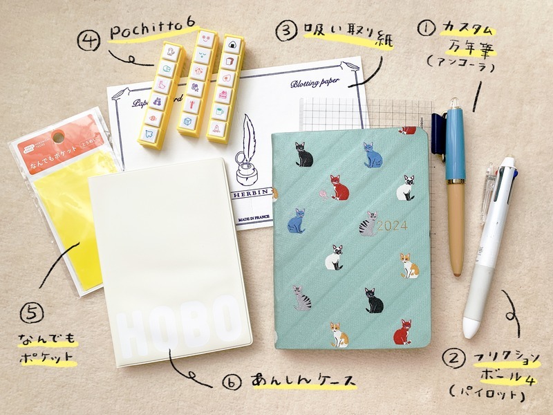 The HON and accessories can all fit in the Hobonichi Everlasting gPaperh Bag (Mini), so my 2024 work set is complete.