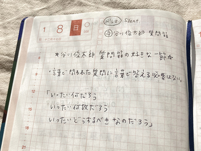 I use the Cousin Avec to keep work memos. On the To-do list on the top right of each daily page, I wrote down small things that left an impression on me.