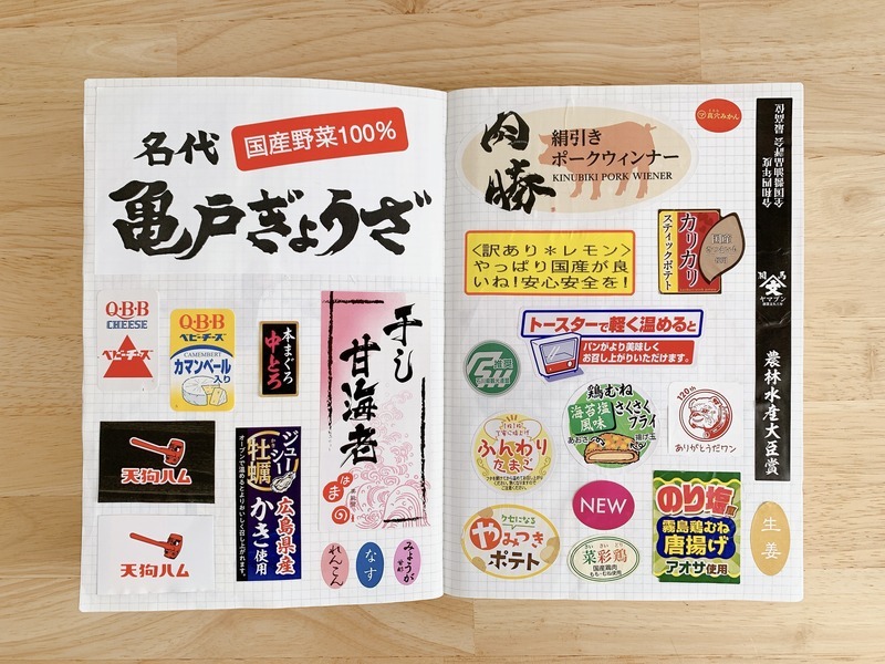 I am unsure if you can see it in the photos, but I keep a rule to use red graph paper pages for snack and bread packages and purple for wrapping paper. (The blue and green graph paper is for pasting anything)