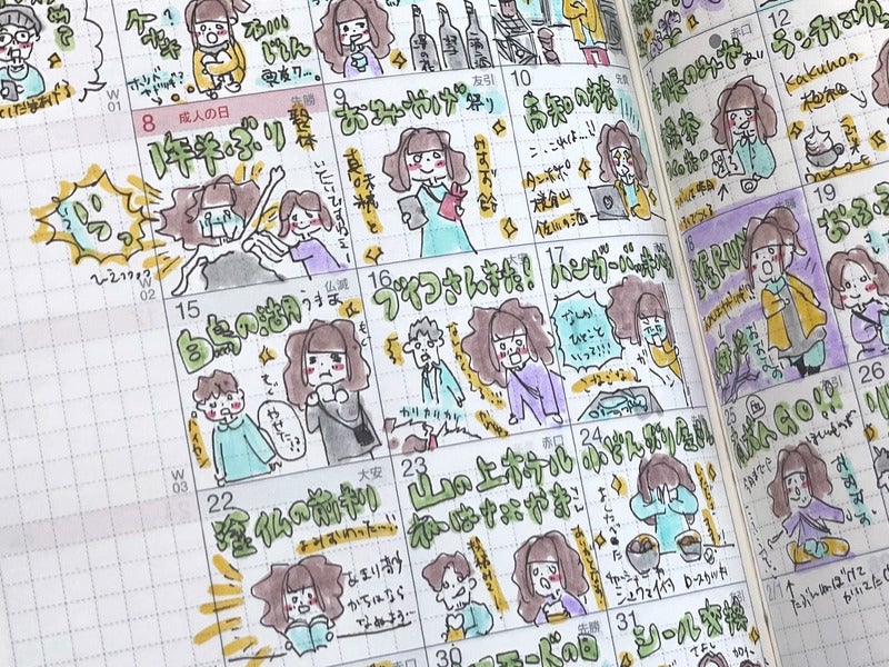 I usually use it to paste art museum tickets and photos of architecture and to write down findings and feelings. It is useful to have the closing dates of exhibitions on the monthly calendar; it helps me remember visiting them. I have a list of exhibitions on the left side of the calendar to easily see how many I could visit!
