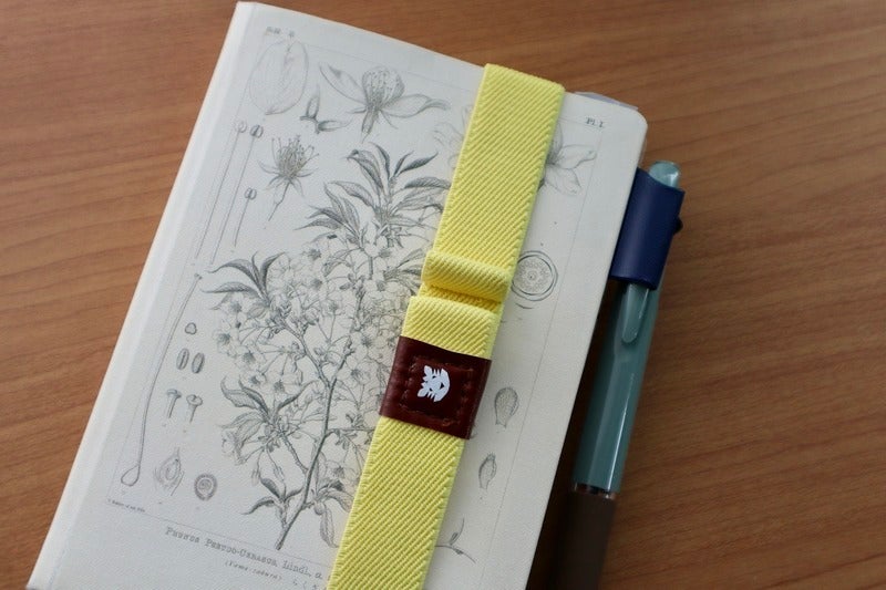 I bought the elastic pen holder with the mesh pocket. It is designed to be used horizontally but doesnft fit tightly enough for the A6 size HON book. Although I knew the size before I bought it, it was so cute that I decided to use it another way. The HON book gets a little bulky as you add more items to the pages, so having an elastic band on it is reassuring.