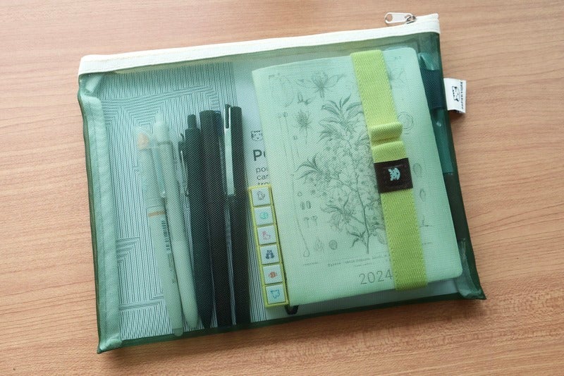 The mesh pocket is not just cute in color and design but also lightweight. I came across it while looking for how to carry my stationery with my HON book. I wanted to keep my stuff as light as possible with a lovely design.