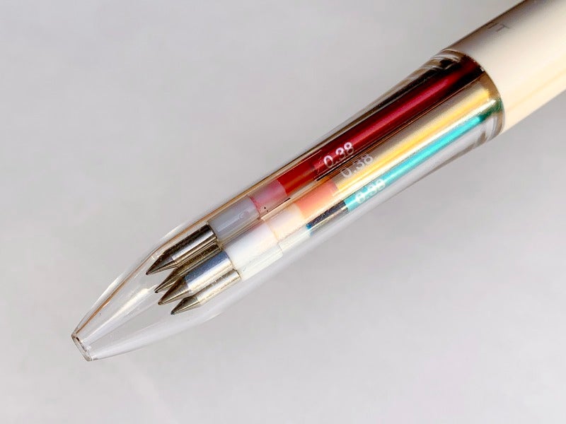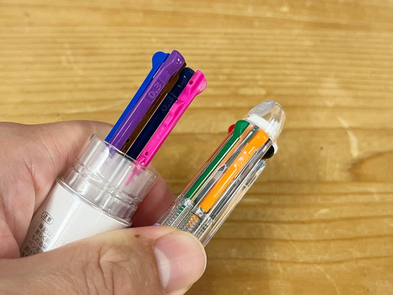 I feel like 5-color ballpoint pens are relatively rare. (It comes with 10 refill colors and you make a set with 5 at a time.)