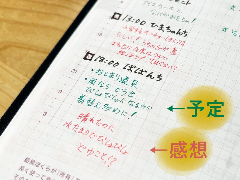 I wrote down my plans in green letters, and in red I wrote my thoughts afterwards, as well as newly laid plans.