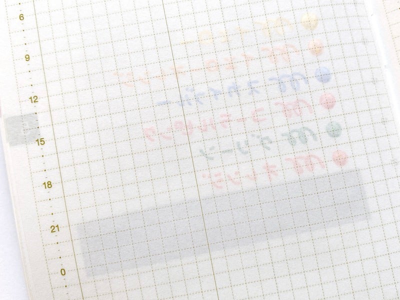 My next item is this clear washi tape. Itfs fun to play around with the transparency by layering strips of tape, and itfs simple enough that you can write on top of it. I bought it because it seemed perfect for taping things like shop cards and so on into my techo to look nice without covering it up too much.