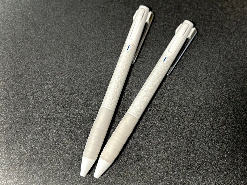 This white pen version is designed for 0.5mm leads, but I have replaced it with a 0.38mm refill since I like fine leads better.
