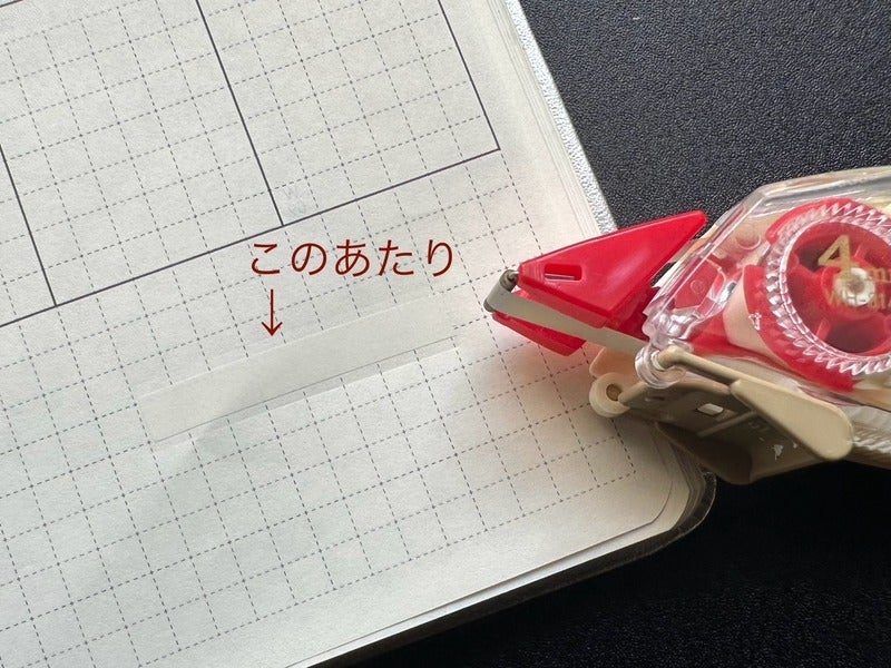 The tape color would stand out when using white correction tape, but this cream-colored one blends in with the Weeks bookfs paper color.