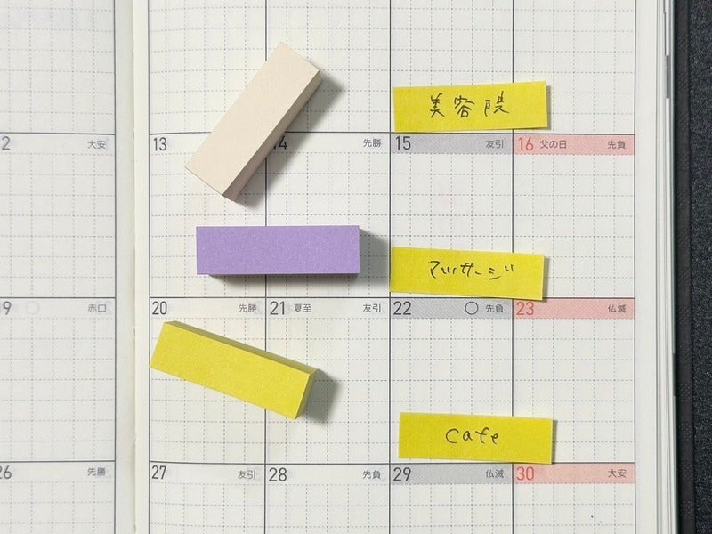 When my schedule changes, I can easily move them without the need to erase and rewrite, and the size is great for the narrow monthly pages.