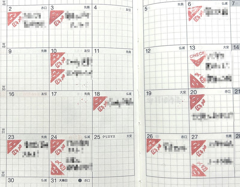 I tried out the Hobonichi Stamp Set on my December monthly calendar (aka deadline city), but...