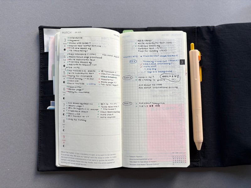 On the right page, I jot down notes from Hobonichifs weekly meetings.