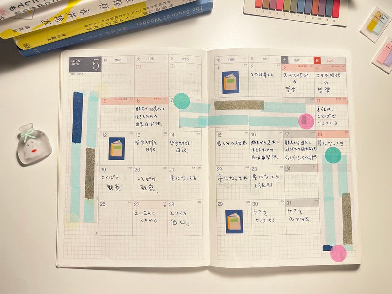 For this techo, I used the mindset of “it’s okay if there are blank pages.” Some days I’d write in detail, some days I wouldn’t write at all. I also tried many different formats. It was a generous, forgiving techo that accepted anything. I absolutely love the Taut Zipped cover. It’s always so cute and refreshing to look at. I found the keyholder at the Joy of Life Exhibition. It's super adorable and always cheers me up too.