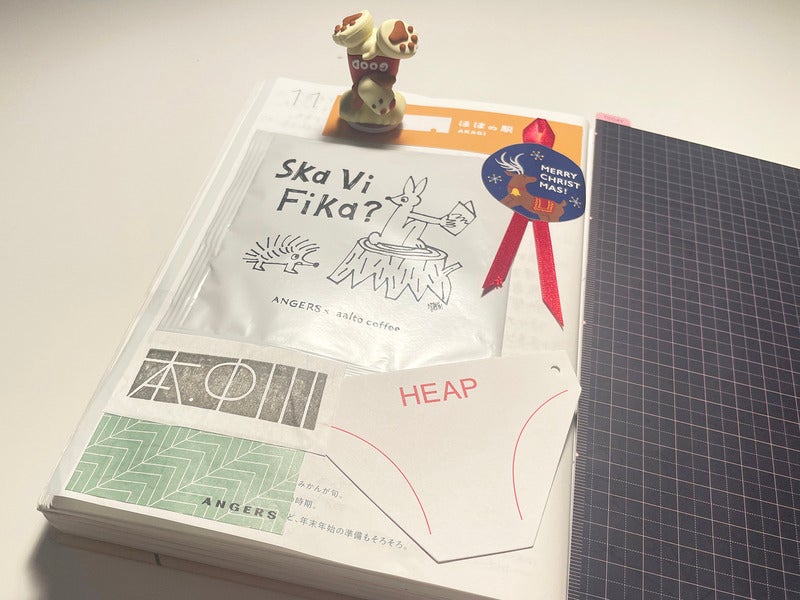 Here's a page where I simply stuck a coffee bean sticker from my usual coffee shop—the ones they put on the lids. Just seeing it brings back the friendly faces of the staff. Thank you for a year of delicious coffee.