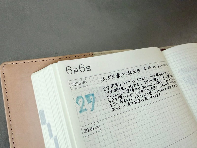 My style for the 5-Year Techo has settled into a “title + details” format. When something happens that I want to remember from year to year, I write that year’s number in a colored pen. Thanks to the Hobonichi Techo App, Thanks to the Hobonichi Techo App, I can jot notes on my phone during my commute and copy them into the techo later, which has helped me just about keep it up. I wonder what color ink I should write with next year?