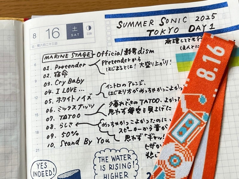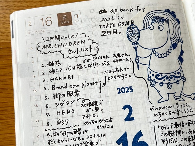 By the way, this very plain techo is written mostly with a Frixion Synergy Knock 03. This year was my Weeks debut, and I wanted to write and draw with a very fine line. Since it’s even thinner than the 0.38mm pen I used before, I gave it a try—and now it’s a favorite.